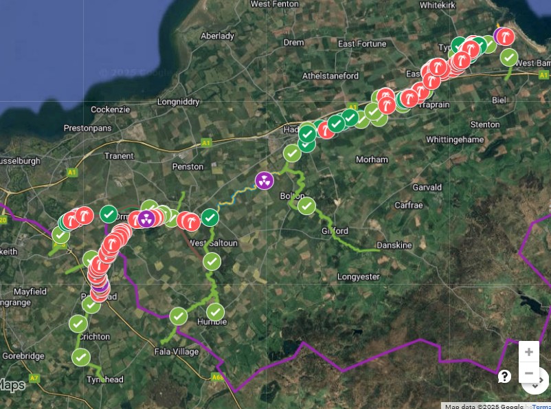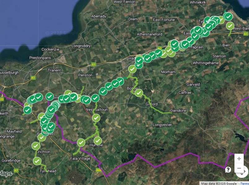 • This year on the 15km stretch between Pencaitland and East Linton we found only 3 plants. It just goes to show that we have to stay vigilant and thorough – seeds can lie dormant for years waiting for the right conditions to germinate. And thorough: a flowering one means we missed it last year, either we never found it, or we didnt treat it properly. – if we miss one