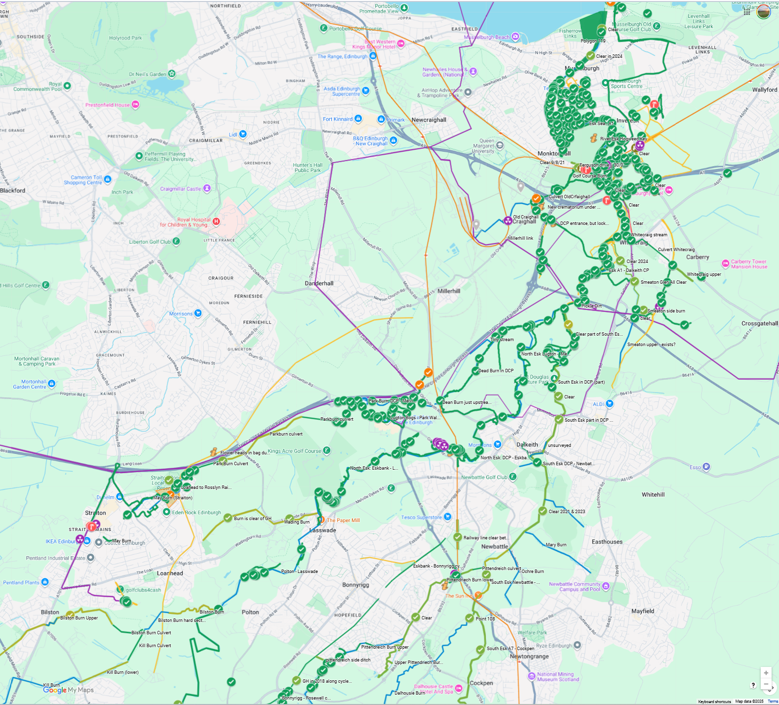 On the Esk, its our 5th year in Musselburgh, and the 4th covering the whole Esk catchment. This includes Eskmills, Inveresk, Dalkeith Country Park, the North Esk up to Penicuik, the South Esk up to Gorebridge, the Dean/Park Burn up to its source in Straiton, and many smaller tributaries.