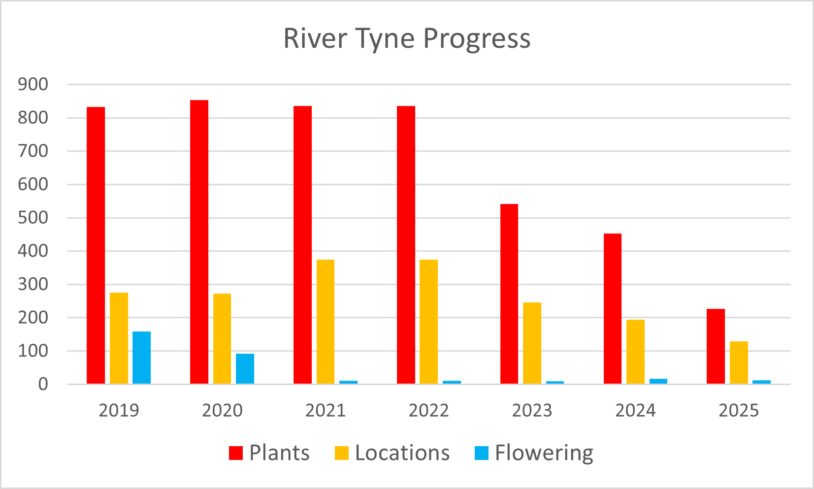 On the Tyne every visible plant was dealt with, and only a handful of flowering plants appeared, which were all properly dealt with.
